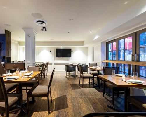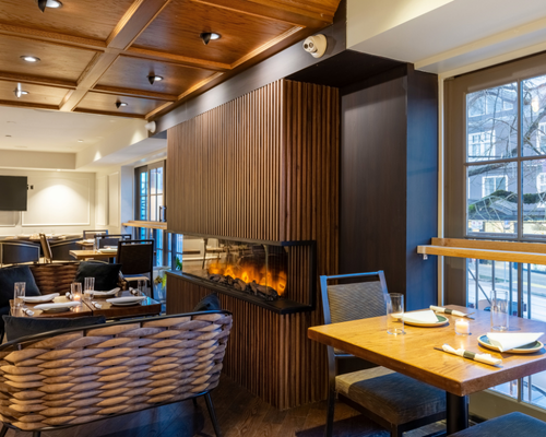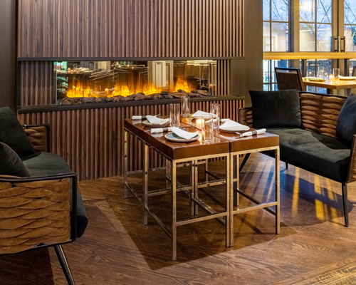 Mezzanine with fireplace for relaxed dining & mingling